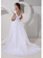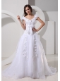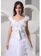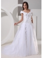 Custom Made A-line Appliques Decorate Off The Shoulder 2013 Wedding Dress