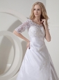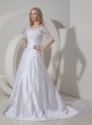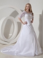 Home >  Wedding Dresses >  Low Cost Wedding Dresses > Custom Made A-line Scoop Low Cost Wedding Dress Satin Lace Chapel Train