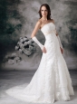 Custom Made A-line Strapless Lace Wedding Dress Bowknot Court Train