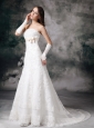 Home >  Wedding Dresses >  Lace Wedding Dresses > Custom Made A-line Strapless Lace Wedding Dress Bowknot Court Train