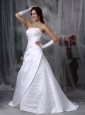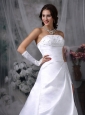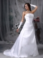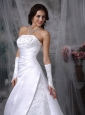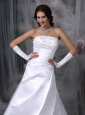 Custom Made A-line Strapless Low Cost Wedding Dress Satin Embroidery Court Train