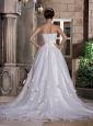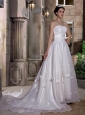 An exquisite dress is indispensable to your wedding, which may be the most important day of your life. By no means will you regret if you choose this dress for your wedding. It is characterized by a strapless bodice, which is embellished by a shining waistband. The skirt boasts a number of floral embellishment, making it splendid. You are sure to be charming and fabulous on your big special day in this wedding dress.