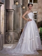 Custom Made A-line Strapless Wedding Dress Chapel Train Taffeta and Organza Ruch and Hand Made Flowers