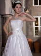 Home >  Wedding Dresses >  Low Cost Wedding Dresses > Custom Made A-line Strapless Wedding Dress Chapel Train Taffeta and Organza Ruch and Hand Made Flowers
