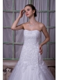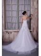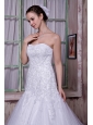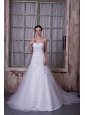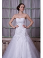 Custom Made A-line Strapless Wedding Dress Taffeta and Tulle Appliques Court Train