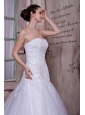 Home >  Wedding Dresses >  Elegant Wedding Dresses > Custom Made A-line Strapless Wedding Dress Taffeta and Tulle Appliques Court Train