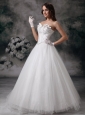 Custom Made A-line Strapless Wedding Dress Tulle Beading Floor-length
