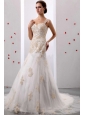 Home >  Wedding Dresses >  Latest Wedding Dresses > Custom Made A-line Straps Appliques Decorate Wedding Dress With Court Train In 2013