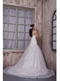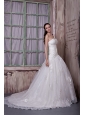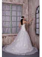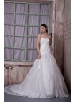 Custom Made A-line Sweetheart Court Train Taffeta and Lace Hand Made Flowers Wedding Dress