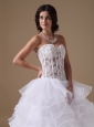 Custom Made A-line Sweetheart Wedding Dress Chapel Train Organza Appliques Chapel Train