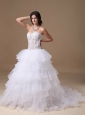 Home >  Wedding Dresses >  Popular Wedding Dresses > Custom Made A-line Sweetheart Wedding Dress Chapel Train Organza Appliques Chapel Train