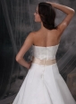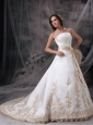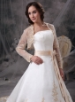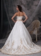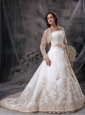 Custom Made A-line Wedding Dress Strapless Satin Embriodery Court Train