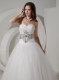 Home >  Wedding Dresses >  Elegant Wedding Dresses > Custom Made A-line Wedding Dress Sweetheart Taffeta and Organza Beading Chapel Train