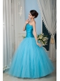 Custom Made Aqua 15 Quinceanera Dress A-line / Princess Sweetheart Tulle Beading Floor-length