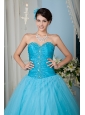 Home >  Quinceanera Dresses >  15 Quinceanera Dresses > Custom Made Aqua 15 Quinceanera Dress A-line / Princess Sweetheart Tulle Beading Floor-length