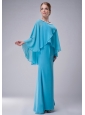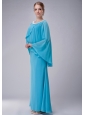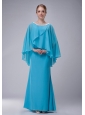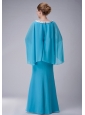 Custom Made Aqua Blue Column Scoop Mother Of The Bride Dress Chiffon Beading Floor-length