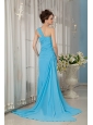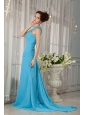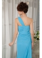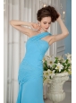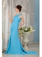 Custom Made Aqua Blue Empire One Shoulder Prom / Evening Dress Chiffon Ruch Brush Train