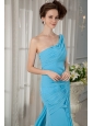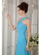 Home >  Prom Dresses >  Modest Prom Dresses > Custom Made Aqua Blue Empire One Shoulder Prom / Evening Dress Chiffon Ruch Brush Train