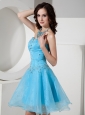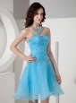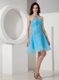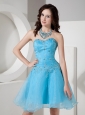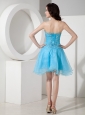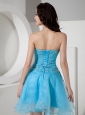 Custom Made Baby Blue Cocktail Dress A-line Sweetheart Organza Beading Mini-length