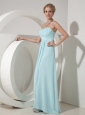 Home >  Bridesmaid Dresses >  Elegant Bridesmaid Dresses > Custom Made Baby Blue Elegant Bridesmaid Dress Column Sweetheart Chiffon Beading and Ruch Floor-length