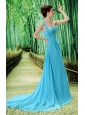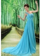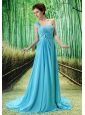 Custom Made Baby Blue One Shoulder Appliques Clarines Prom Dress Beaded Decorate Bust In Formal Evening