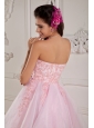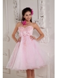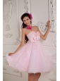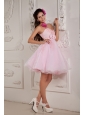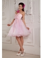Custom Made Baby Pink A-line / Princess Sweetheart Cocktail Dress Organza Beading and Appliques Mini-length