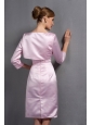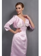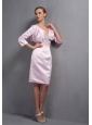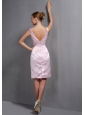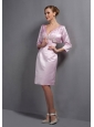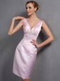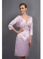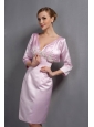 Custom Made Baby Pink Column Mother Of The Bride Dress V-neck Ruch and Appliques Knee-length Taffeta