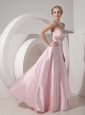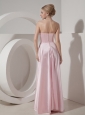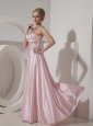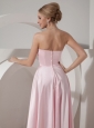 Custom Made Baby Pink Evening Dress Empire Strapless  Elastic Woven Satin Beading Floor-length