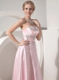 Home >  Evening Dresses > Custom Made Baby Pink Evening Dress Empire Strapless Elastic Woven Satin Beading Floor-length