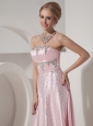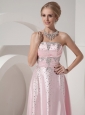 Custom Made Baby Pink Evening Dress Empire Strapless Elastic Woven Satin Beading Floor-length