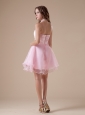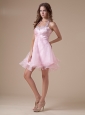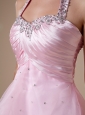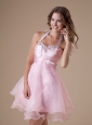 Custom Made Baby Pink Short Prom Dress With Halter Neckline Beaded and Ruch Decorate