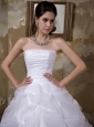 Custom Made Ball Gown Strapless Wedding Dress Taffeta and Organza Pick-ups Floor-length