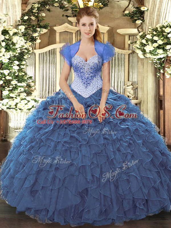 Custom Made Ball Gowns Sweet 16 Dresses Navy Blue Sweetheart Organza Sleeveless Floor Length Lace Up