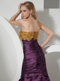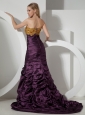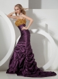 Custom Made Beaded Decorate On Taffeta Brush Train Sweetheart Neckline Dark Purple Prom Dress