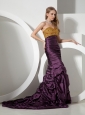 Home >  Special Occasion Dresses >  Celebrity Dresses > Custom Made Beaded Decorate On Taffeta Brush Train Sweetheart Neckline Dark Purple Prom Dress