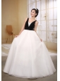 Custom Made Black and White Ball Gown Wedding Dress With V-neck Neckline Floor-length