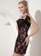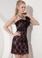 Custom Made Black Cocktail Dress Column Strapless Lace Bow Mini-length