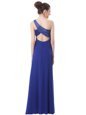 Custom Made Blue One Shoulder Criss Cross Beading Prom Dress Sleeveless