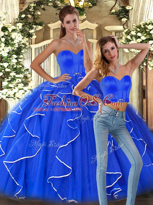 Home >  Quinceanera Dresses >  Detachable Quinceanera Skirts > Custom Made Blue Tulle Lace Up Quinceanera Dresses Sleeveless Floor Length Ruffles