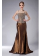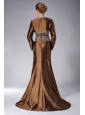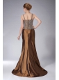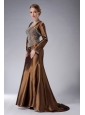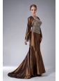 Custom Made Brown Mermaid Straps Mother Of The Bride Dress Brush Train Taffeta Beading