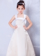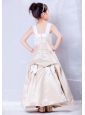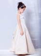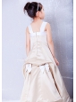 Home >  Flower Girl Dresses > Custom Made Champagne A-line Square Bows Flower Girl Dress Ankle-length Taffeta