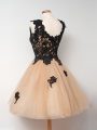 Custom Made Champagne Sleeveless Lace Knee Length Wedding Party Dress
