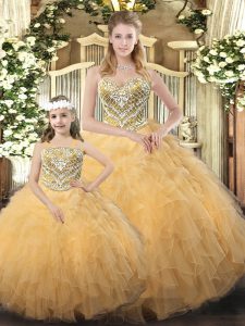 Custom Made Champagne Sleeveless Organza Lace Up Quinceanera Dress for Military Ball and Sweet 16 and Quinceanera