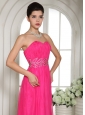Custom Made Column Hot Pink Sweetheart Prom Celebrity Dress With Ruch and Beading In Nevada
