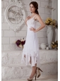 Custom Made Column V-neck Beach Wedding Dress Tea-length Chiffon Embroidery