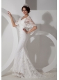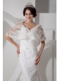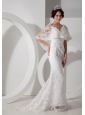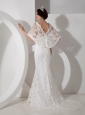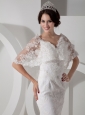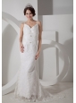 Custom Made Column V-neck Lace Wedding Dress rush Train