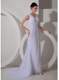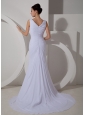 Custom Made Column V-neck Wedding Dress Court Train Chiffon Ruch