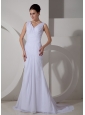 Home >  Wedding Dresses >  Low Cost Wedding Dresses > Custom Made Column V-neck Wedding Dress Court Train Chiffon Ruch