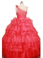 Custom Made Coral Red Little Girl Pageant Dress Asymmetrical Floor-Length Organza