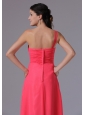 Custom Made Coral Red One Shoulder Beading and Ruch Norwich Connecticut Prom Dress